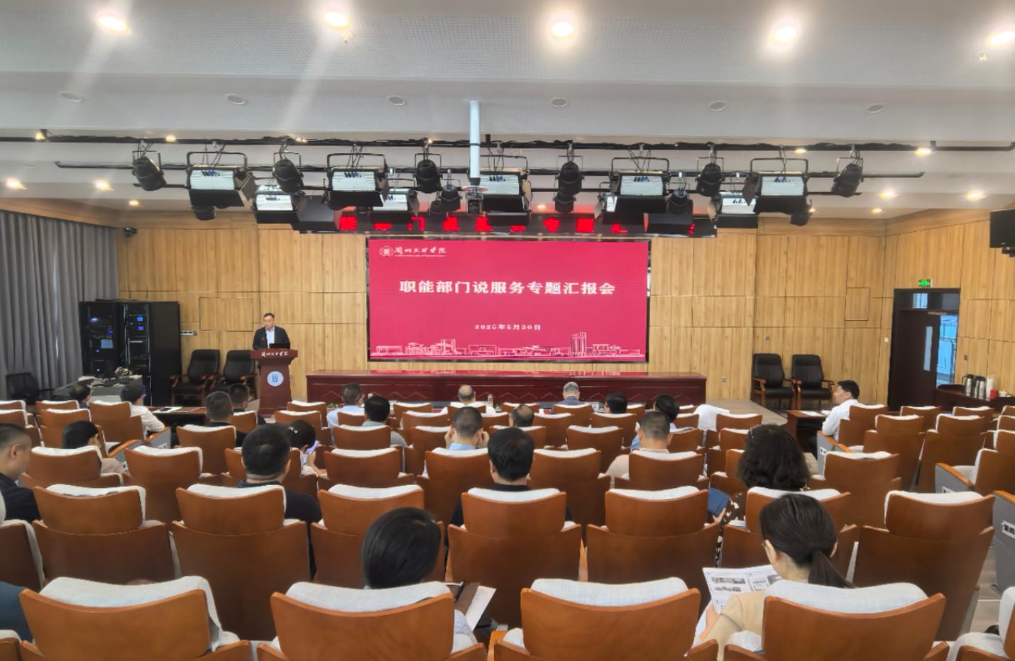 为扎实推进本科教育教学审核评估工作,提升学校职能部门服务保障教育教学工作能力,5月20日上午,beat365在文昌楼学术报告厅召开职能部门说服务专题汇报会。会议由党委委员、副校长张发旺主持召开,党委副书记普登学,党委委员、副校长张焱,各机关处室,群团机构,教辅单位负责人及督导代表出席会议。