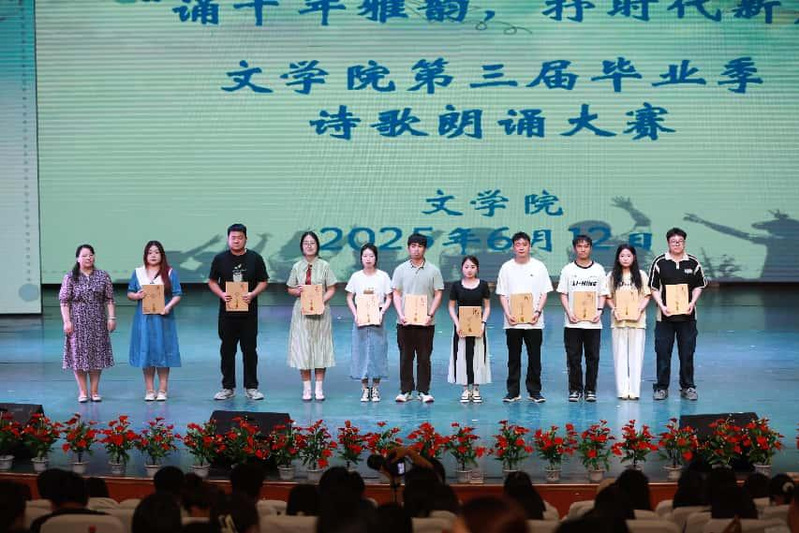 6月12日下午,文学院在实验剧场举办“诵千年雅颂 抒时代新声”第三届毕业季诗歌朗诵大赛。