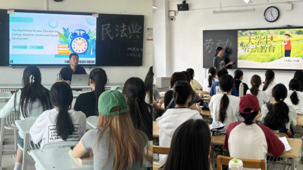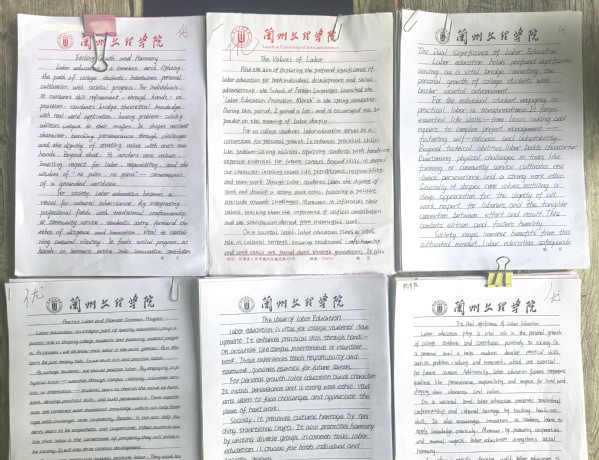 活动期间,学院组织学生参加学校举办的“劳模工匠进校园”宣讲会,激励学生从劳模精神中汲取力量;各班组织开展劳动教育主题微电影观影活动,让学生领悟劳动精神的内涵。各班班主任主持召开劳动教育主题班会,围绕“劳动创造美好生活——外语人的视角”等话题进行讨论,结合我院2011届优秀校友、甘肃省劳动模范廖亚洲同志的先进事迹,引导学生理解劳动的意义和价值;组织校园清洁与绿化、内务整理等劳动实践活动,提升环保意识,增强生活自理能力。另外,连续两年举办“唯有笔墨,铭劳不遗”英文投稿活动,围绕劳动教育对大学生个人成长及社会的双重意义展开写作,深化劳动教育内涵,逐步构建学院劳动教育特色品牌。