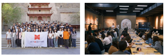 思政与专业教育同频共振。课程建设突出价值引领,在“敦煌美术赏析”、“甘肃民间美术”等课程中融入文化自信教育,开设非遗工艺美术类课程实现“以美育人、以文化人”。创新“行走的思政课堂”,在敦煌莫高窟、江西瑶里古镇等专业考察中融入红色教育,实现思想引领与专业学习有效衔接。党建引领学科发展,以两个“国一流专业”为牵引,形成“设计+文创”“环境+美学”“数字+演艺”交叉方向,精准对接区域文旅产业发展需求。