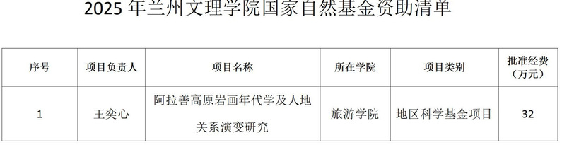 8月27日,国家自然科学基金委员会正式公布了2025年度国家自然科学基金项目的评审结果,beat365旅游学院王奕心博士申报的项目《阿拉善高原岩画年代学及人地关系演变研究》获批2025年度国家自然科学地区基金项目,批准经费32万元。