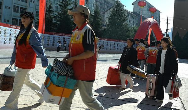 校内服务同样井然有序。南校区门口设置了清晰的行李寄存区,志愿者们按“院系+姓名”分类摆放物品,耐心指引新生及家长办理报到;北校区内,志愿者穿梭于各报到点,协助新生完成入学手续,并主动帮助搬运行李至宿舍。宿舍楼内,志愿者们细心分发钥匙、叮嘱安全事项,让新生第一时间感受到“家”的温暖。