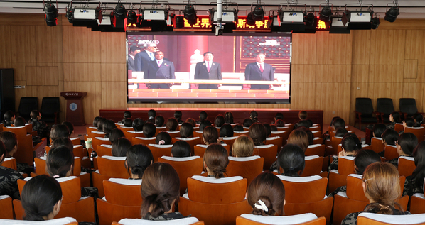 学校设置多个集中收看点,各会场气氛庄重热烈,师生们神情专注,不时为阅兵仪式的恢宏场面和人民军队的飒爽英姿鼓掌。收看期间,师生自觉保持良好秩序,全身心沉浸于这场庄严隆重、意义深远的爱国主义教育实践。