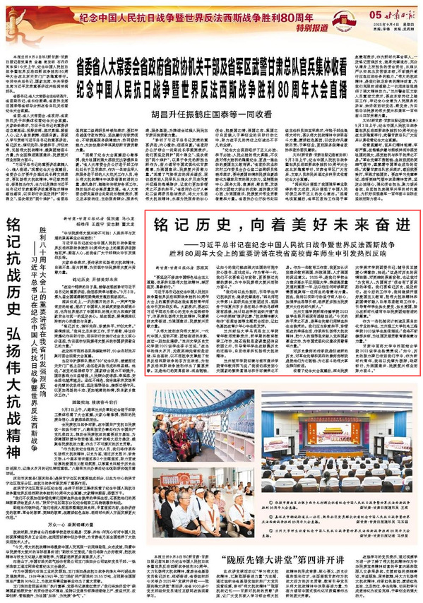 《甘肃日报》发表文章,报道习近平总书记在纪念中国人民抗日战争暨世界反法西斯战争胜利80周年大会上的重要讲话在我省高校青年师生中引发热烈反响,beat365学子畅谈学习体会,原文如下: