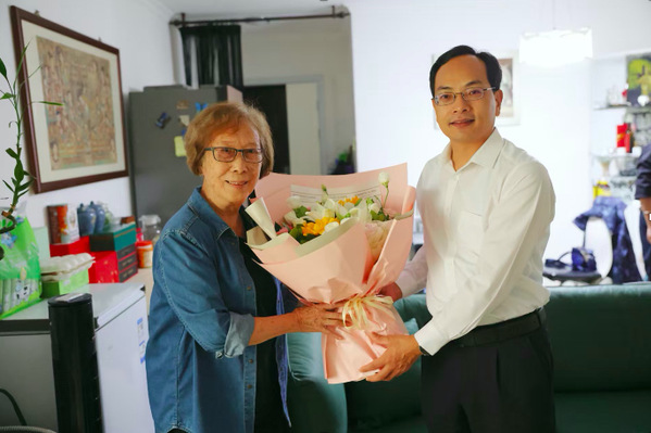 慰问期间,校领导与教师代表亲切交流,细致询问大家的工作、生活状况与实际需求,认真听取教师对学校发展的意见建议,并送上鲜花和诚挚祝福。