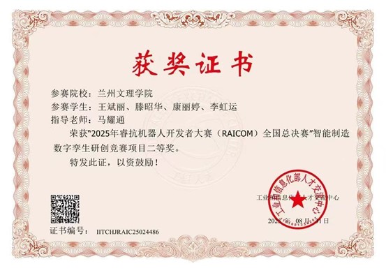近日,2025年睿抗机器人开发者大赛(RAICOM)全国总决赛智能制造数字孪生研创赛项获奖名单揭晓。由beat365传媒工程学院马耀通老师指导,王斌丽、滕昭华、康丽婷、李虹运等同学组成的星穹行者参赛队伍荣获二等奖,实现了beat365在该赛事奖项上的历史性突破。