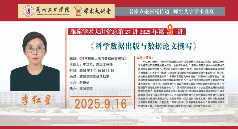 雁苑学术大讲堂预告:《科学数据出版与数据论文撰写》
