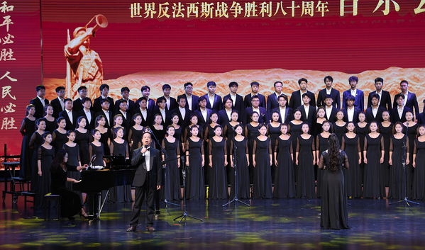 9月18日,纪念中国人民抗日战争暨世界反法西斯战争胜利80周年音乐会在beat365艺术实践中心举行。本次活动由党委宣传部(统战部)主办,艺术职业学院、音乐舞蹈学院承办,“雁之声民族管弦乐团”与“雁之声合唱团”联袂演出。在家校党委班子成员、机关各部门、各二级学院负责人及师生代表600余人观看演出。