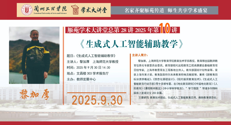 学术大讲堂:《生成式人工智能辅助教学》专题讲座预告