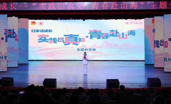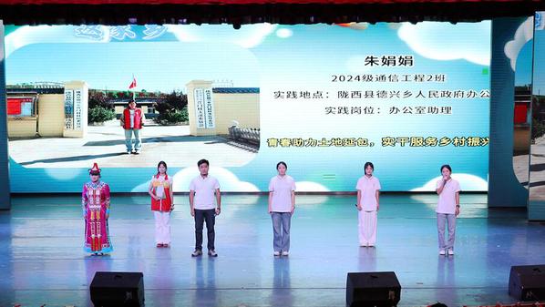 “返家乡”“扬帆计划” 环节,诗朗诵《青春在故土绽放》点燃气氛。学生代表分享在家乡参与非遗传承、图书馆管理、社区服务、土地二轮承包工作的故事,字里行间满含对故土的深情,彰显青春担当。“这个夏天,我们走出象牙塔,把足迹印在家乡的土地上;我们曾在陌生领域彷徨,却在实践中学会勇敢与责任”,诗朗诵结尾道出所有实践学子的心声。
