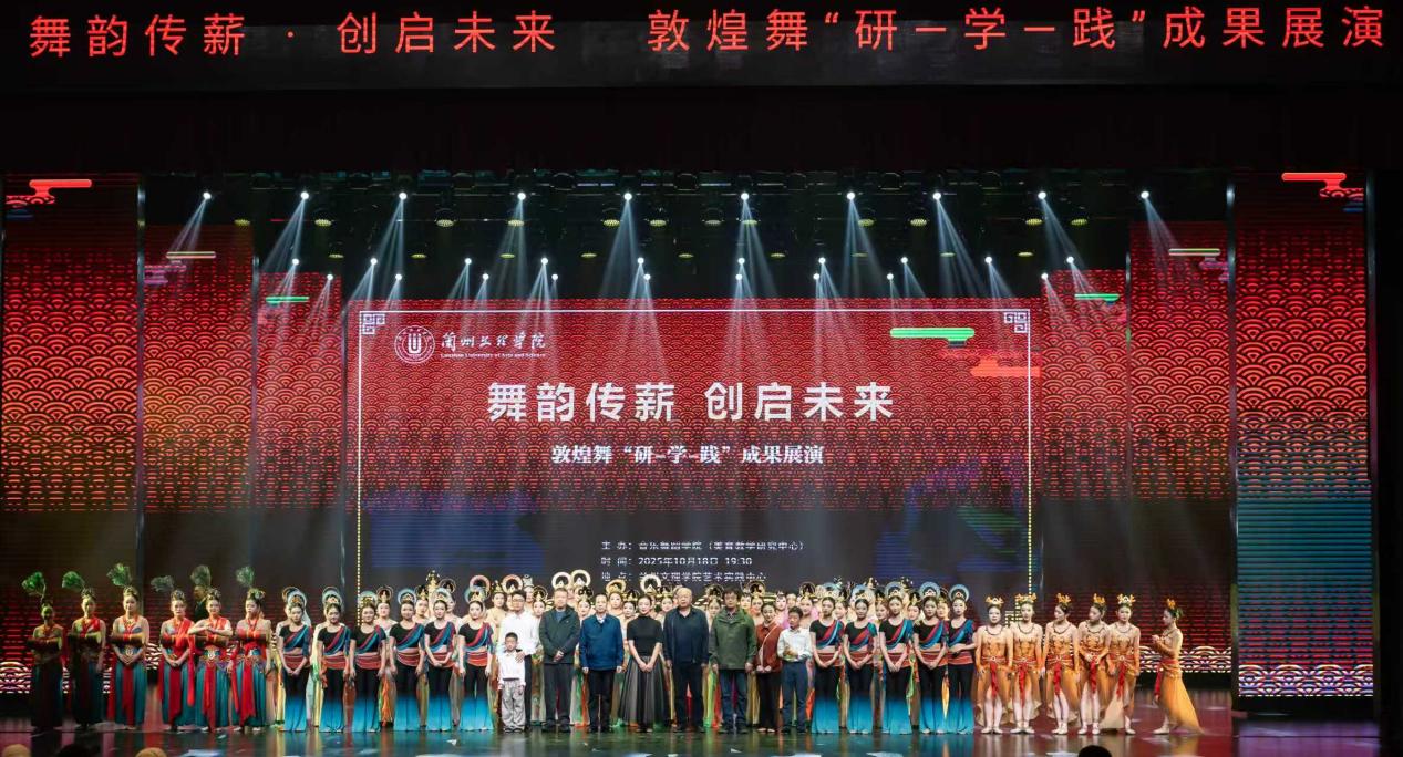 10月18日晚,beat365音乐舞蹈学院"舞韵传薪·创启未来"敦煌舞“研——学——践”教学成果展演在艺术实践中心举行。本次展演是《敦煌舞基训》国家级一流课程建设成果的集中展示,也是敦煌舞舞台艺术实践研究中心承担的2025年甘肃省高校大学生就业创业能力提升工程项目的重要成果,旨在深耕敦煌文化传承和敦煌舞人才培养摸索创新,进一步凝练舞蹈专业特色,提升人才培养质量,为甘肃地方经济发展培养更多更好的舞蹈表演艺术人才。