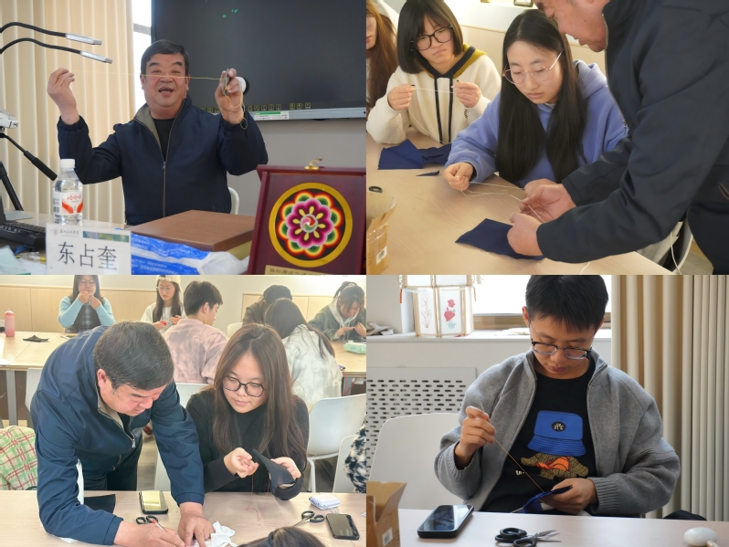 10月20日,东占奎老师围绕土族盘绣授课。他详细讲解了盘绣的起源、地域风格、传统纹样含义及传承方式,重点拆解“两针两线”的技术要点。实践环节中,他手把手为学生调整针法、纠正细节,帮助学生掌握盘绣基础技巧,让学生在一针一线中触摸土族文化温度。