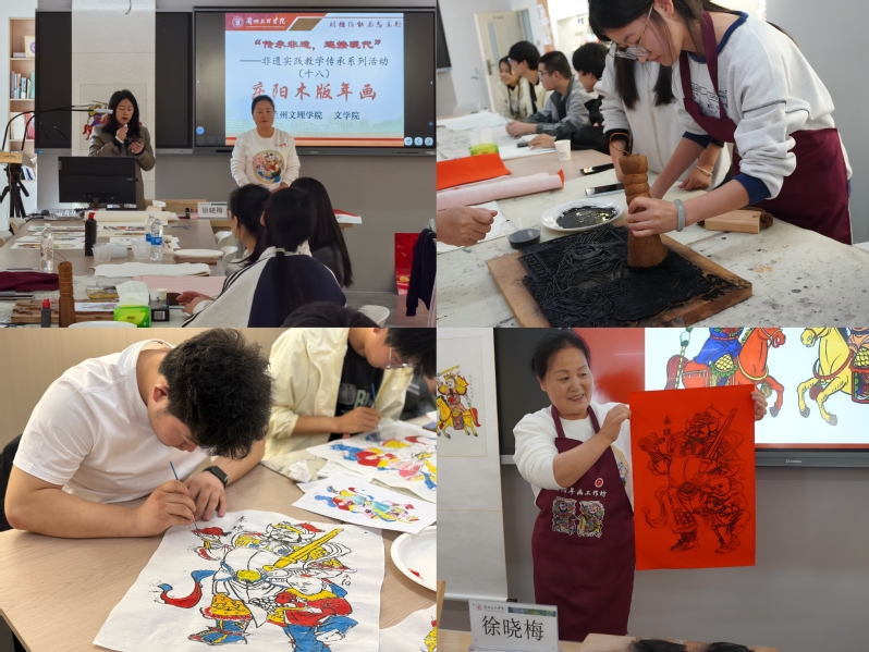 10月17日的木版年画课上,徐晓梅老师先系统介绍甘肃木版年画的发展脉络、制作流程及历史溯源,让学生掌握技艺背景。随后她带领学生从印刷环节入手,逐步完成填色工序,指导大家制作多幅年画作品。学院教师也主动加入实践,师生共同动手创作,现场气氛活跃。