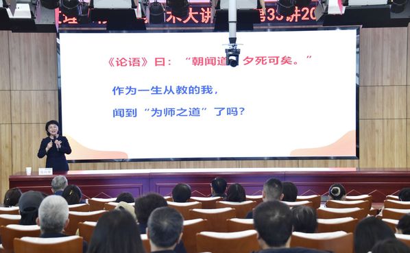 张向葵教授围绕"教师如何师人以德""教师如何求真以恒""教师如何服务社会"三个维度,结合自身40余年从教经验,系统阐述了为师之道的深刻内涵。她指出,新时代教师应当坚守教育初心,筑牢育人根本的核心要义,追求大学精神,深刻领悟创造、批判与社会服务精神的内涵,永葆教育热忱。自觉丰富文化底蕴,从中华优秀传统文化中汲取智慧,践行“仁义礼智信”与“修齐治平”的成长之道。将对标名师标准与立足教学实践相统一,将“立德树人”使命内化于心,提升职业责任感与幸福感,实现个人价值与社会价值的有机融合。