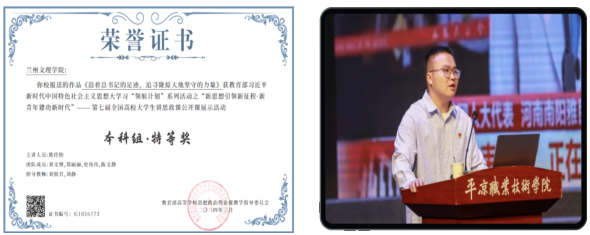 构建“全员讲思政课”育人格局。开展思政课教师全员大练兵,通过教授“观摩课”、骨干教师 “示范课”、年轻教师“优质课”等听课评课活动,提升教师教学能力,形成“以赛促教、以评促改”的良性氛围。组织思政专业学生全员讲思政课、全校学生参与大学生讲思政课公开课展示活动,2024年学院学生团队在第七届全国高校大学生讲思政课公开课展示活动中荣获特等奖,展现了学生的理论素养与表达能力。