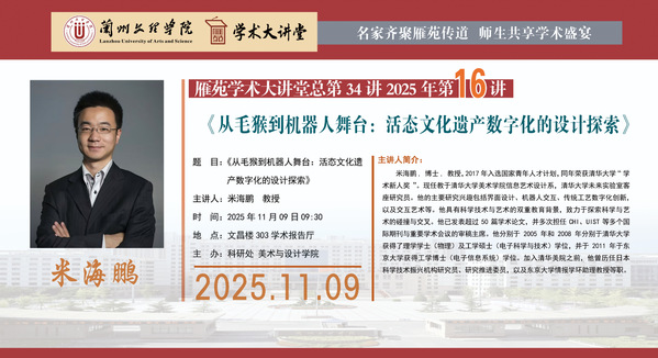 雁苑学术大讲堂预告:《从毛猴到机器人舞台:活态文化遗产数字化的设计探索》