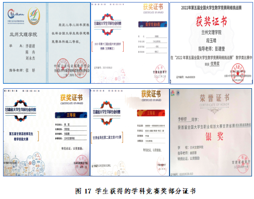 学科竞赛与创新创业教育成果:学院以学科竞赛与创新创业教育为双轮驱动,近三年,学生在全国大学生数学建模竞赛、数学竞赛、师范生教学技能竞赛、“健心杯”心理健康教育综合技能大赛等赛事中获得国家二等奖1项,省级特等奖3项,省级一、二等奖71项。构建“以赛促学、赛教融合”培养体系,依托数学建模、教学技能、创新创业三大核心赛道,通过“项目化训练+导师全程指导+多学科协同”模式,强化学生创新思维与实践能力双提升,形成“课堂延伸-竞赛锤炼-能力内化”的育人闭环,彰显应用型人才培养与地方教育服务需求的深度契合。