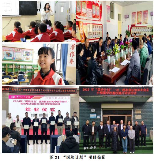 对接基础教育,服务地方建设:学院坚持“对接基础教育,服务地方建设”。近年来,学院承担“国培计划”、省级教师培训等各类教师培训项目60余项,培训人数总计20000余人。“国培计划”的实施,加深了学院专业专任教师对甘肃省地方基础教育现状和人才需求的了解,深化了和甘肃省优质初中的合作办学机制,与基础教育中小幼、地方教育主管部门协同,通过深度开展教育教学研究、承担社会服务等工作,优势互补、合作共赢,不断提升服务地方基础教育的能力,扩大了专业影响和声誉。
