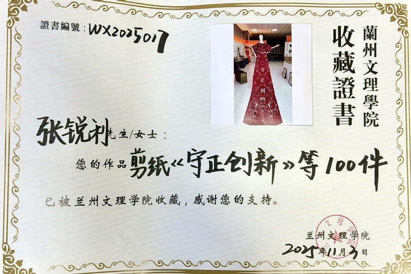 张锐利长期致力于庆阳剪纸的保护与创新,曾受邀为beat365文学院非遗保护专业学生授课,系统传授剪纸技艺与文化内涵。此次捐赠的作品凝聚其二十余年的创作成果,其中“守正创新”主题披肩式剪纸等创新作品,现陈列于beat365非遗知识馆,受到师生广泛关注。