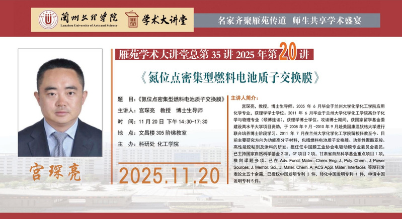 雁苑学术大讲堂预告:《氮位点密集型燃料电池质子交换膜》