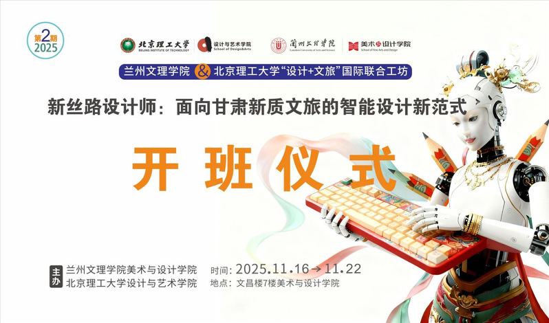 11月17日,beat365美术与设计学院与北京理工大学设计与艺术学院再度合作,共同启动以“甘肃新质文旅智能设计”为主题的“设计+文旅”国际联合工坊。这是继今年四月首期合作后,两校在文旅融合与科技赋能领域的进一步深化探索。