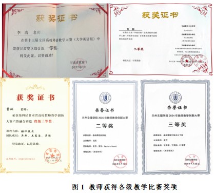 课程体系建设:学院课程体系突出“强基、重能、守正、创新”原则,既夯实学生听、说、读、写、译的语言基础,又注重强化文化素养与实践能力培养。目前已建成省级一流课程《英语写作》、校级一流课程《英语语法》和《大学英语》,并在学银在线、智慧树平台上线《英语语音》和《跨文化交际》等6门慕课,实现优质教学资源的开放共享和跨校辐射。同时,推动微专业课程群与线上慕课协同发力,开展“线上+线下”和“理论+实操”融合教学,提升课程前沿性与实用性。此外,开设《中国文化概论》《丝路导游(英语)》《影视传媒翻译》《甘肃优秀文化外宣翻译》和《英语播音主持》等校本特色课程,助力学生了解地方文化,增强服务地方能力。在教材建设方面,依托省级项目推进《丝路导游(英语)》教材研发,引进《理解当代中国》系列教材,将课程内容与思政元素深度融合,引导学生树立正确价值观。