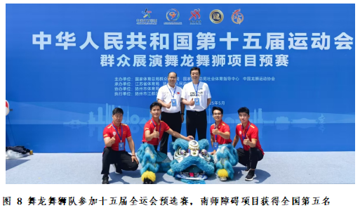 在赛事实践与社会服务方面,学生在各级体育竞赛中屡创佳绩:近四年获省部级以上奖项11项,其中国家级5项(全国舞龙舞狮锦标赛竞速南狮第一名、“舞动中国-排舞联赛” 总决赛特等奖等),省级奖项 18 项;年均开展社区健身指导、全民健身知识讲座、残疾人体育赛事辅助等活动 400 余次,2021年组建的“广场舞推广服务社会实践团队” 获“甘肃省大中专学生暑期社会实践优秀团队”称号,实现“实践育人”与“社会服务”双向赋能。
