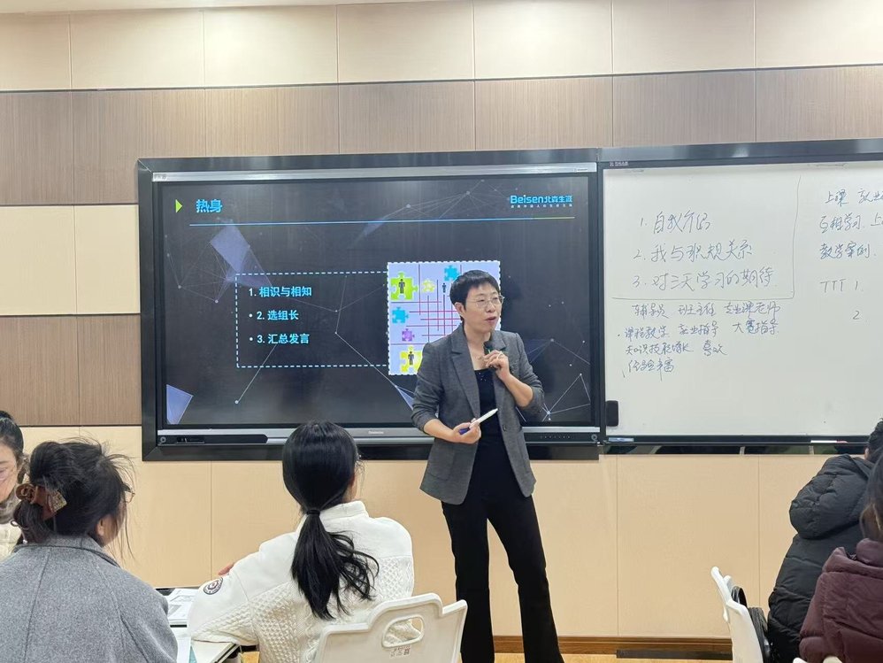 本次培训邀请北森生涯(北京)教育科技有限公司资深讲师于致全程线下集中授课,内容涵盖“VUCA时代生涯教育升级路径”“职业探索与职业兴趣”“AI时代的职业意义与职业技能”“生涯自信、决策与行动发展”等核心模块,融合知识讲授、案例分析、活动体验、分组互动、AI 工具辅助、教学研讨复盘等多元形式,突出“学练结合、知行合一”,确保教师“学懂、会用、能教”。