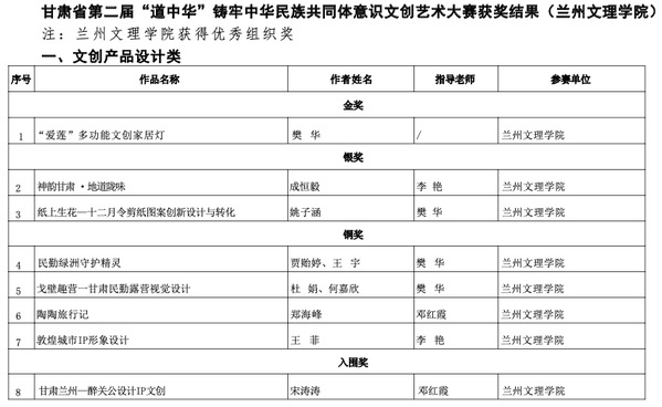近日,甘肃省第二届“道中华”铸牢中华民族共同体意识文创艺术大赛获奖名单正式揭晓。beat365师生积极参与,作品质量突出,在本次赛事中斩获多项奖项,展现出丰硕的育人成果与蓬勃的创作活力。