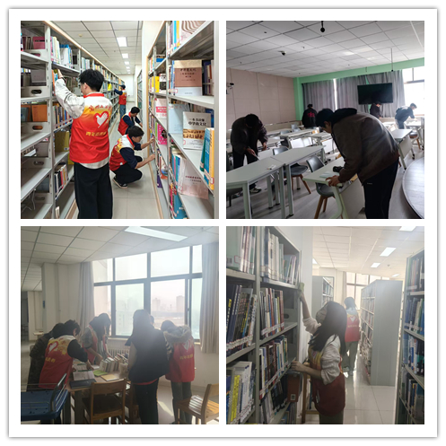 活动中,学院组建分类志愿服务小队,明确分工、责任到人,对教学楼及学院公共区域进行全方位卫生清理,清除卫生死角、规整物品摆放,营造整洁有序的校园环境。志愿者还前往学校图书馆,协助工作人员整理图书、登记借阅信息,为师生提供借阅指引与咨询服务,助力提升图书馆服务效率。