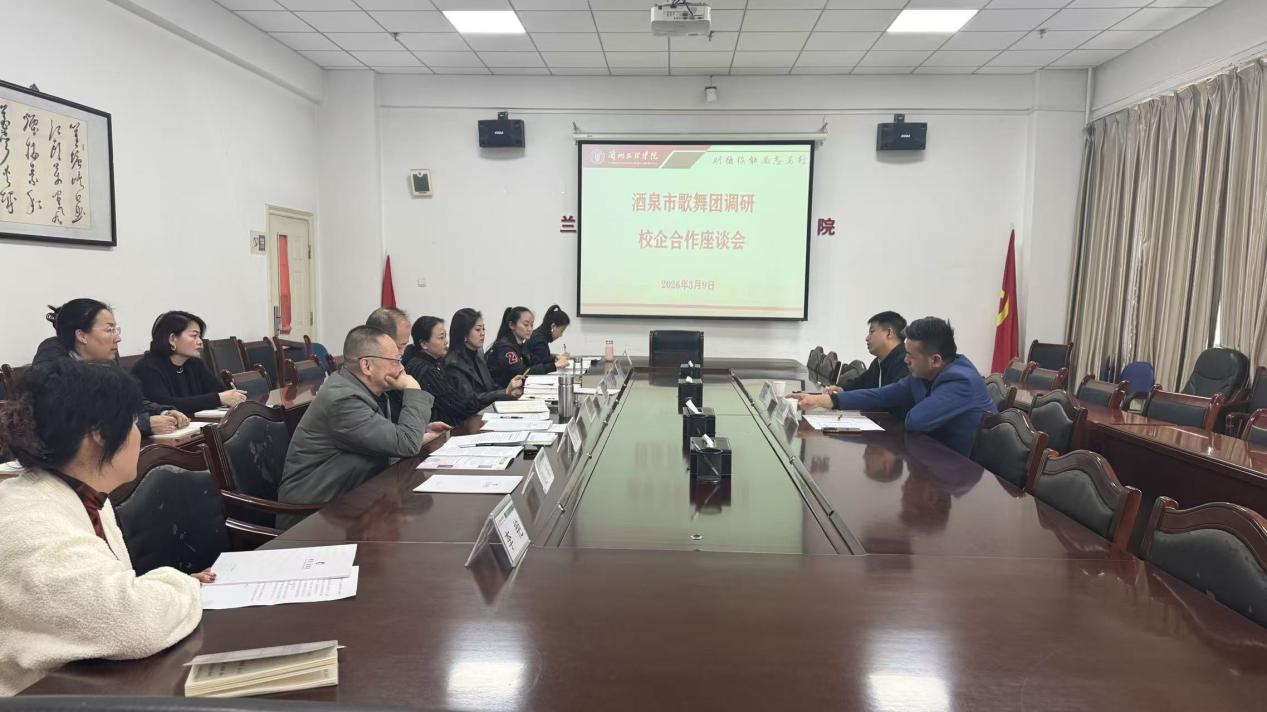3月9日下午,艺术职业学院(甘肃省艺术学校)与酒泉市歌舞团举行校企合作交流座谈会。酒泉市文化旅游发展集团有限公司党委委员、副总经理,酒泉市歌舞团公司董事长郭成志,酒泉市歌舞团公司总经理马星星出席,学院领导班子、各科室及相关教研室负责人参加会议。
