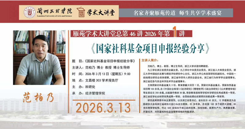 雁苑学术大讲堂预告:《国家社科基金项目申报经验分享》