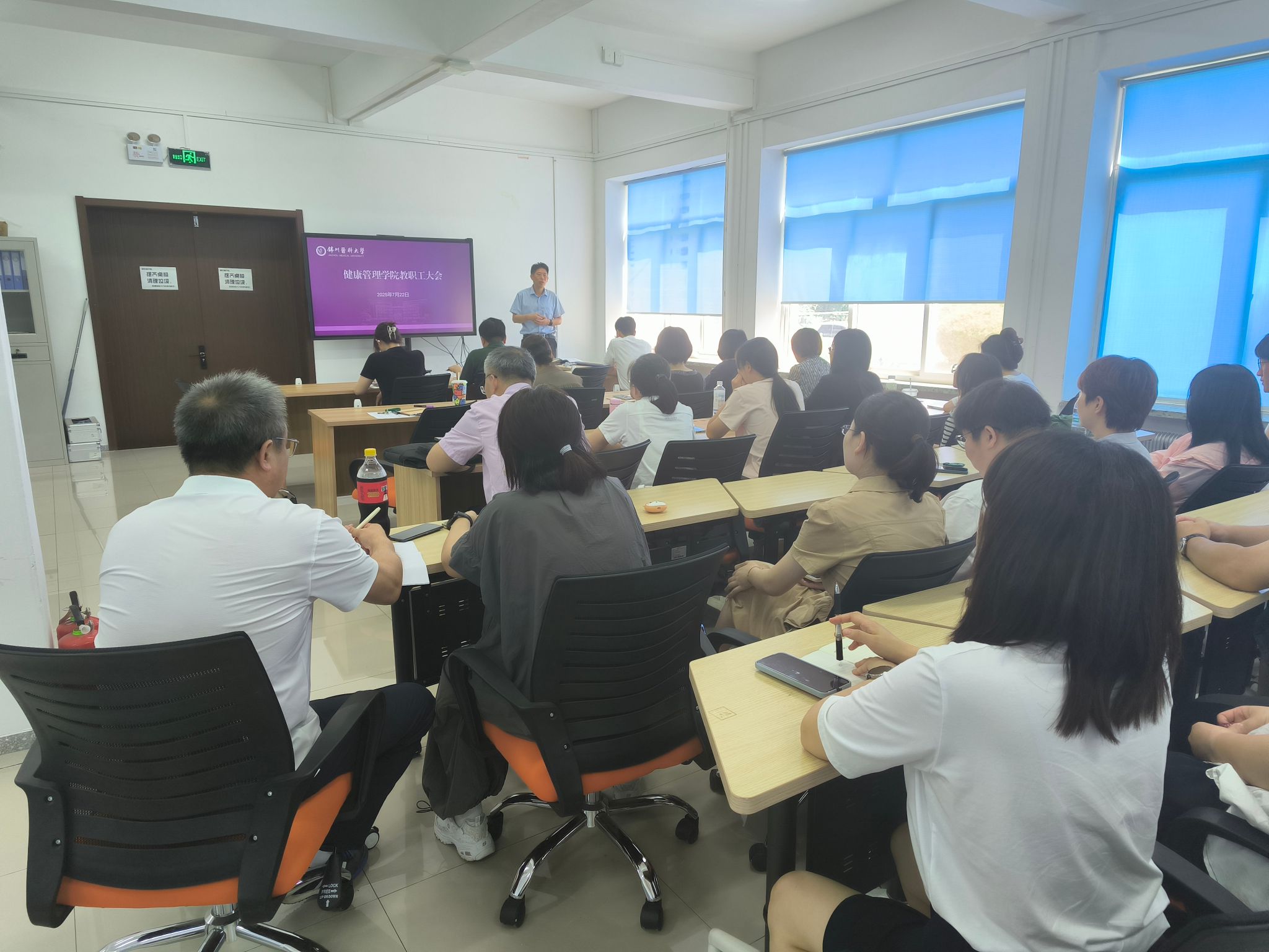 马春宇向全体教职工介绍了新任领导班子及新任科级干部、教学秘书、科研秘书和新引进博士情况,同时对学校将原健康管理现代学院拆分并更名为开云kaiyun体育的重大意义及学院的未来发展规划做了解释说明,未来学院要以健康管理学的学科建设为龙头,以现代产业学院建设为路径,加强公共事业管理、医疗保险、健康服务与管理专业建设,提升人才培养质量。他充分肯定了原开云kaiyun体育上半年取得的各项工作成绩,对学院暑期及下半年工作进行整体部署,在与中国平安财产保险有限公司辽宁分公司、大象营养供应链管理有限公司等企业合作的基础上,继续拓宽合作渠道,推进现代产业学院建设工作。