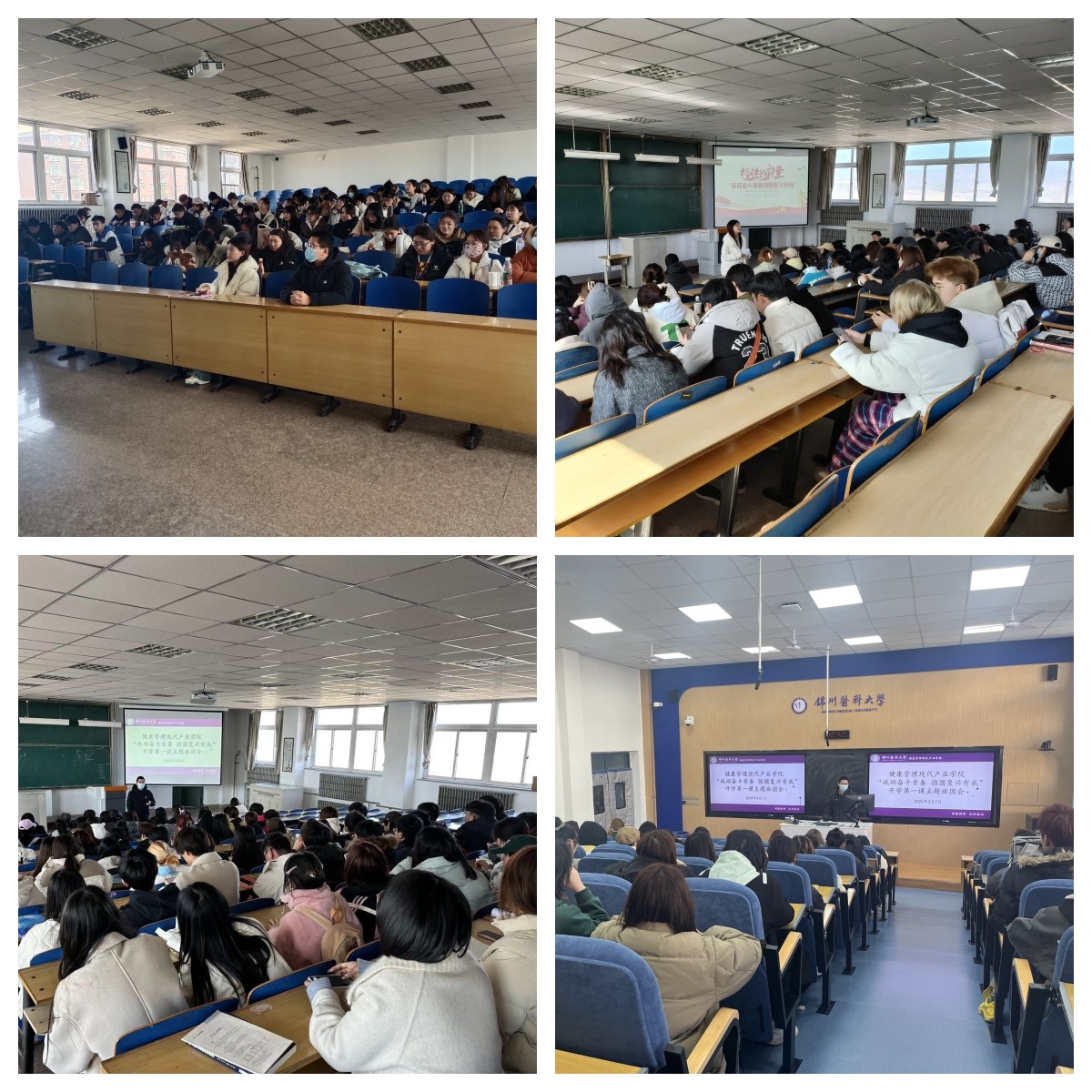 根据《锦州医科大学开展“赓续雷锋精神 奋斗成就梦想”2024年春季“开学第一课”活动方案》要求,开云kaiyun体育围绕“家国情怀”“集体主义”“团结精神”“使命担当”等关键词以年级为单位,利用3月6日、7日两天开展“砥砺奋斗青春强国复兴有我”主题班团会暨年级大会,以青年学子讲述榜样故事的形式凝聚新学期奋发向上的精神力量,同时学生科就新学期开学的相关事宜从日常管理、寝室卫生、安全用电、请销假和学风建设几个方面以及本学期的重点工作向同学们作了通报,2021级、2022级、2023级全体同学以及学生科高彬彬老师、路莹莹老师参与。
